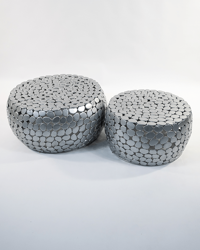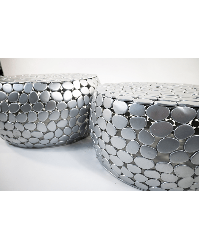 Modern kézzel készített alumínium kisasztalok – Ezüst szett (2 db)
