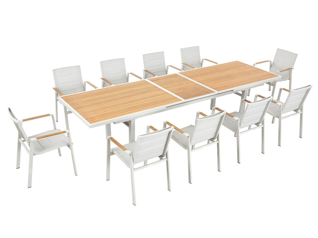 Nofi Dining Textilene Set – 10 fehér szék és bővíthető étkezőasztal kültérre