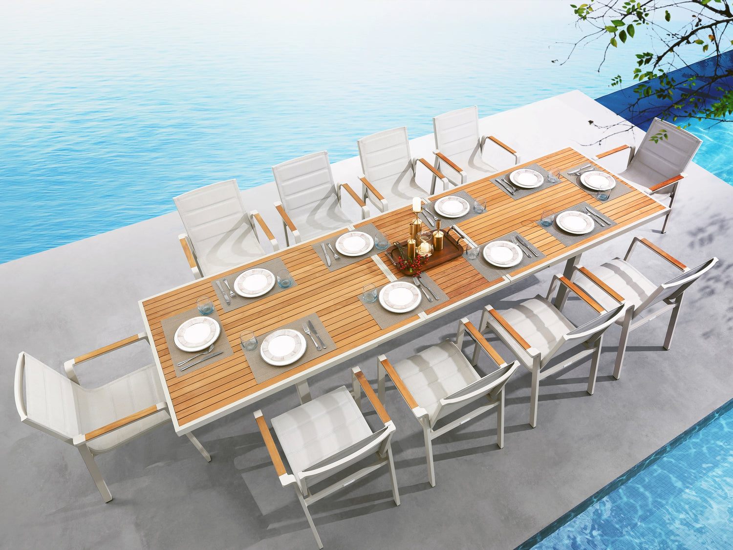 Nofi kültéri étkezőgarnitúra – Textilene szett 10 székkel + bővíthető asztallal