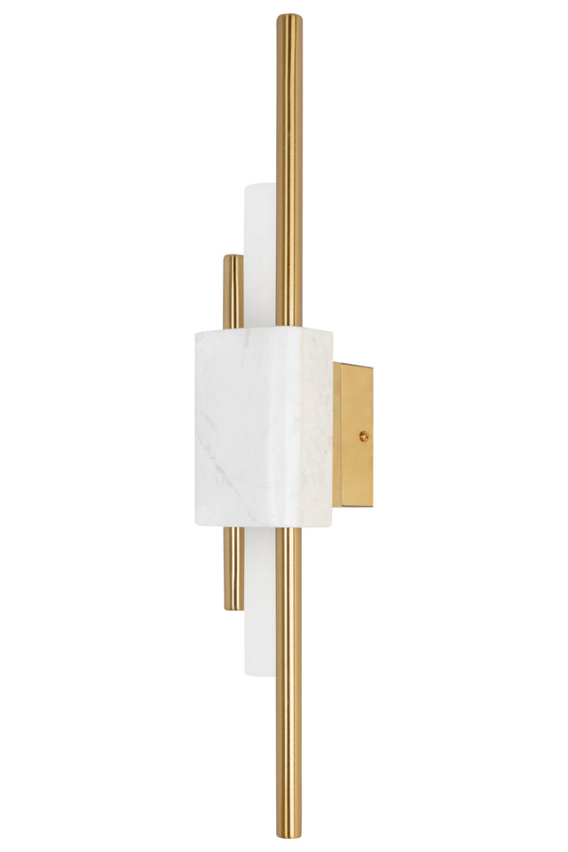 Díszítőelemek: Az arany hosszúkás elemek modern, mégis elegáns megjelenést kölcsönöznek a lámpának. Lámpabúra: A matt üveg elrejti a LED-modulokat, biztosítva a kellemes világítást. Irányított fények: A lámpa felfelé és lefelé irányuló fénysugarai egyedülálló vizuális hatást teremtenek a térben. Természetes márvány csat: Hangsúlyozza a lámpa egyedi és exkluzív karakterét.