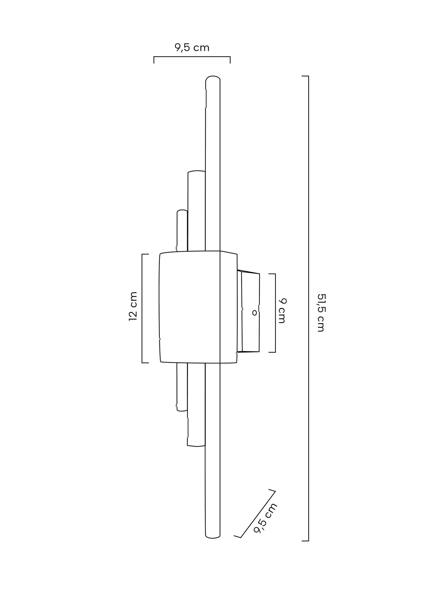- Lámpatest méretei: Magasság: 50 cm, Szélesség: 9,5 cm, Mélység: 9,5 cm