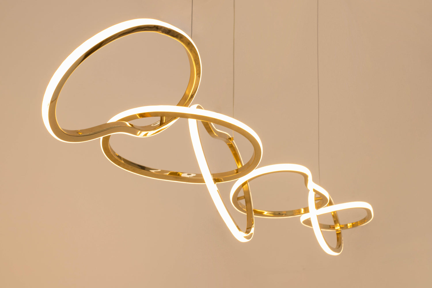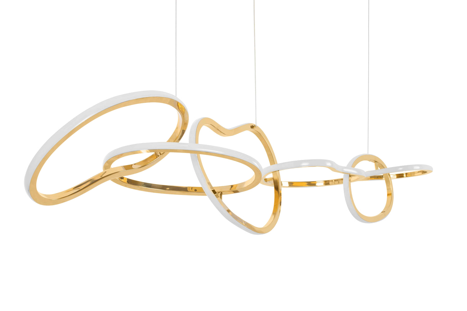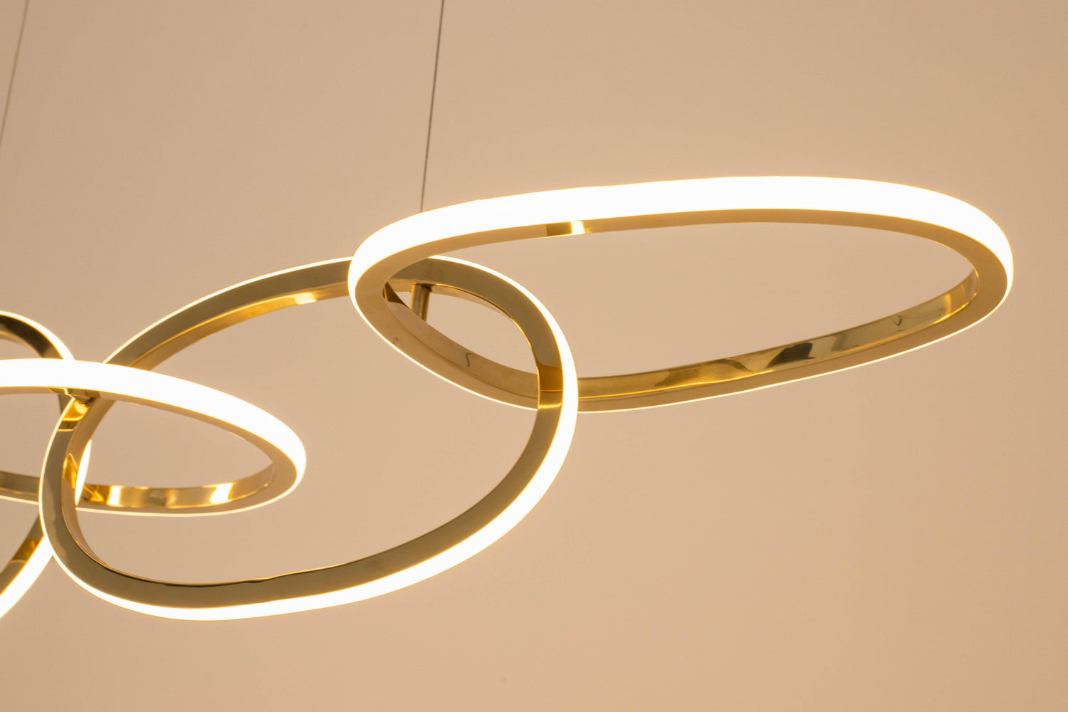 Egyedi tervezés: A hat szemet gyönyörködtetően kialakított, egyedi formájú gyűrű összetett kompozíciót alkot, amely minden helyiség központi eleme lesz, karaktert és eleganciát kölcsönözve. Luxus megjelenés: Az ízlésesen megformált, arany színű acélgyűrűk kiemelik a lámpa kifinomultságát, meleg, arany fényt árasztva a térbe. Erős világítás: Az integrált LED fényforrás kiemelkedő intenzitást és energiatakarékosságot biztosít, tökéletes megvilágítást nyújtva a szobának, miközben hangulatos atmoszférát teremt.