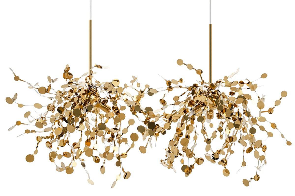 - Érme inspiráció: A két lámpabúra, amelyek a levegőbe dobott maroknyi érmére hasonlítanak, nemcsak fényforrás, hanem a kreativitást és a képzeletet serkentő elem is. Ez a forma extravaganciát és eredetiséget ad a belső térnek.