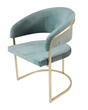 Exkluzív Flores szék, óarany színű, fém vázzal és félkör alakú talppal.
